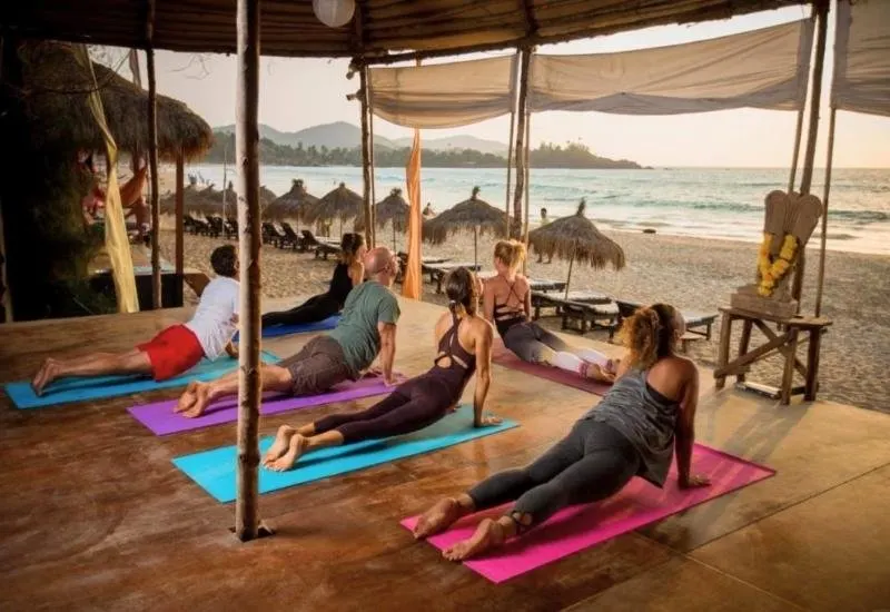 The yoga retreat provided by Morjim Bay Resort is a perfect escape from pollution, noise, and screens, keeping you grounded.